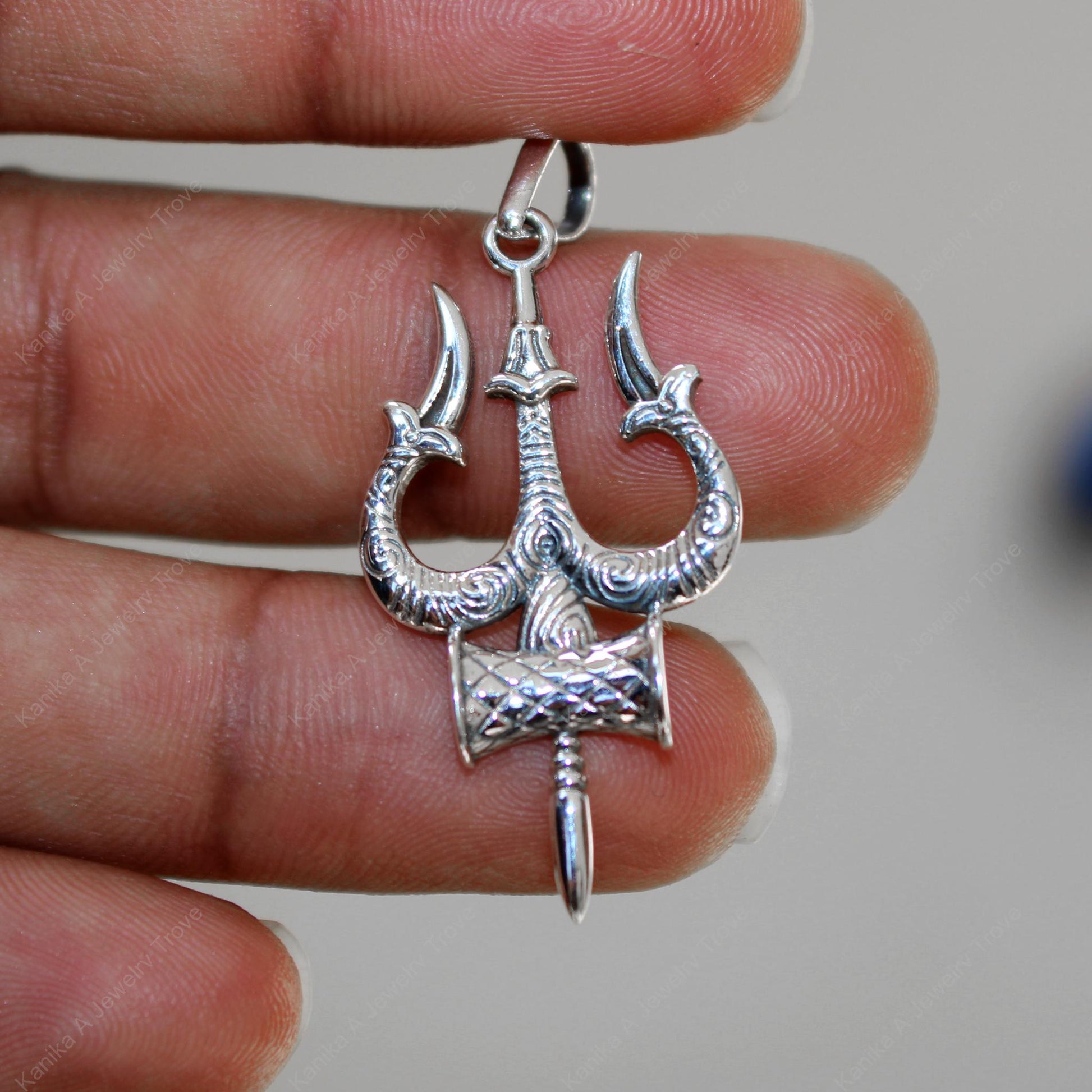Elegant Sterling Silver Trident Pendant Necklace - Mens Trishul Pendant