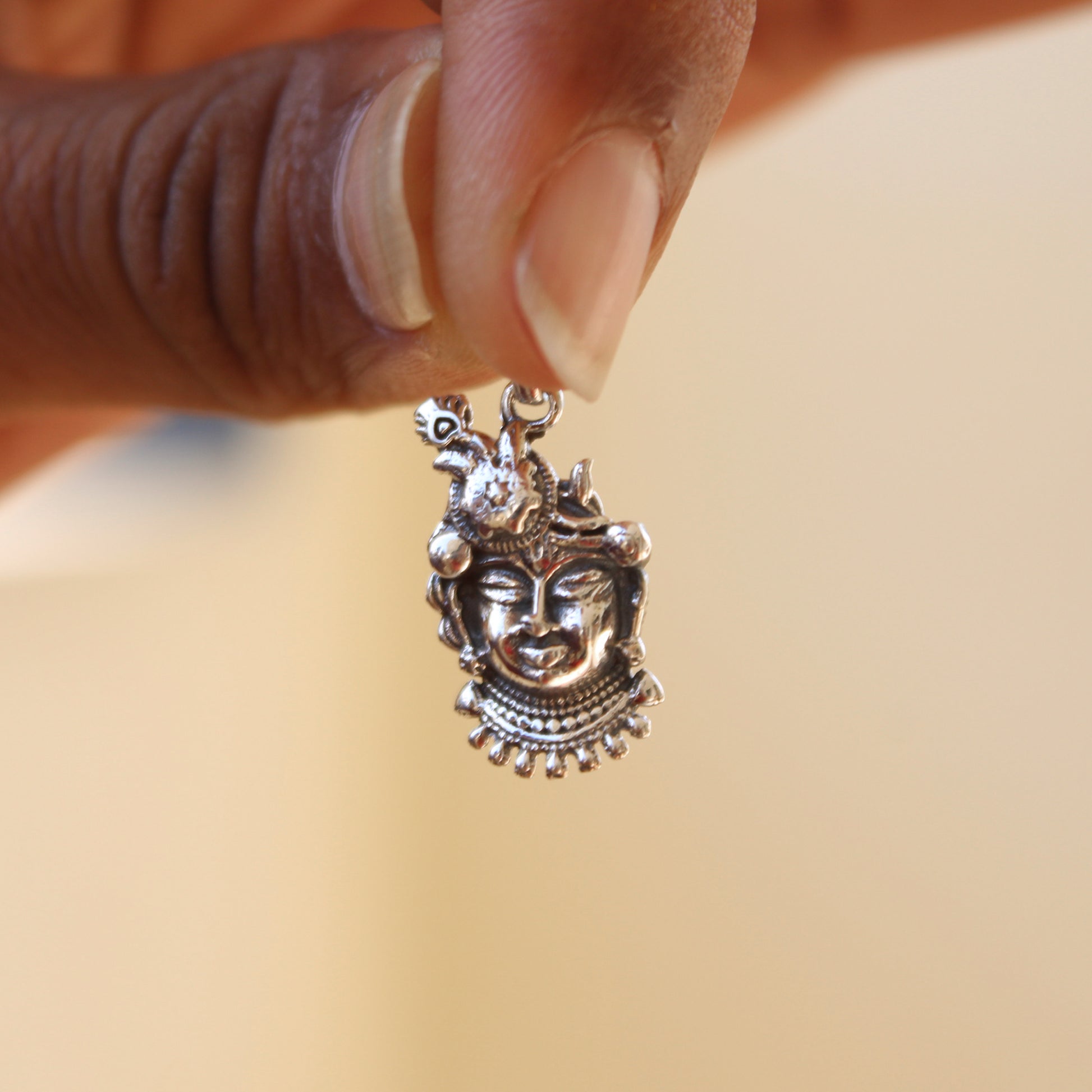 Handcrafted Sterling Silver Natwar Krishna Face Pendant | Oxidized Finish