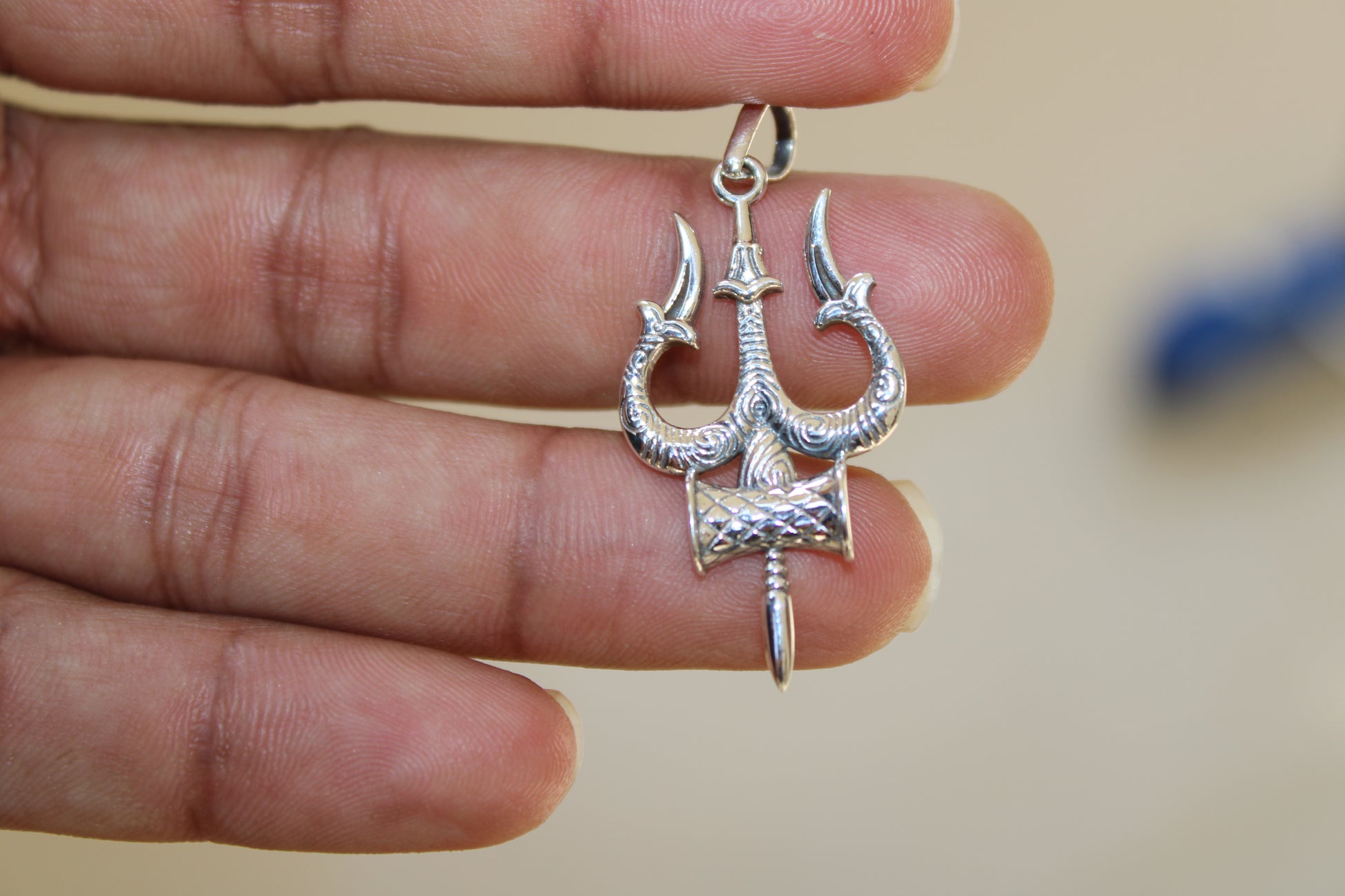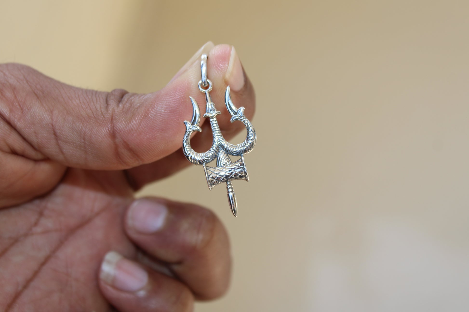 Crafted with intricate detail, the Shiva Trishul & Damaru Pendant symbolizes divine power and cosmic rhythm. This elegant piece blends spiritual significance with refined design, making it a meaningful accessory for those who appreciate both tradition and style. Perfect for adding a touch of sophistication to any ensemble.