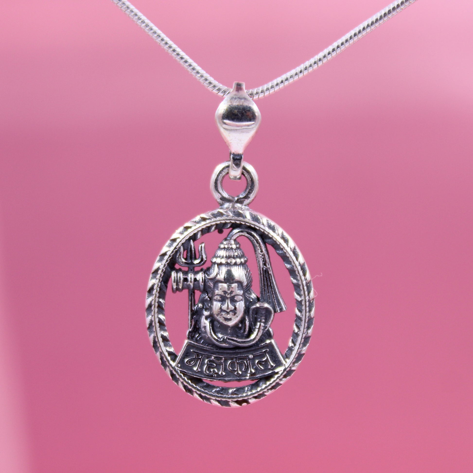 nvoke divine blessings and strength with this Handcrafted Sterling Silver Mahakal Pendant. Designed with intricate detailing, the pendant features Lord Shiva (Mahakal) with a Trishul, representing power, protection, and spiritual energy. Made from pure 925 sterling silver, this pendant is a timeless piece of devotion and style – perfect for everyday wear, meditation, or gifting on religious occasions.